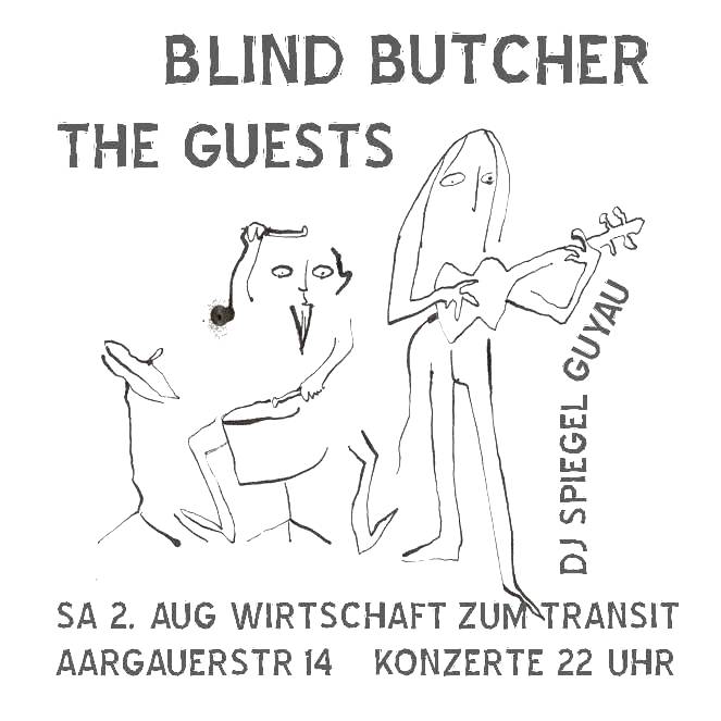 BLIND BUTCHER aus Luzern sind zwei Männer in Strumpfhosen. Two men in tights. Die spielen so tight, dass es einen aus den Socken haut. Was dem Zürcher Magazin 78s an ihrer Musik aufgefallen ist: «Aus Mali-Blues wird urplötzlich Crossover und das “Cannonball”-Riff der Breeders wird von einem Rhythmuswechsel zerhäckselt.»