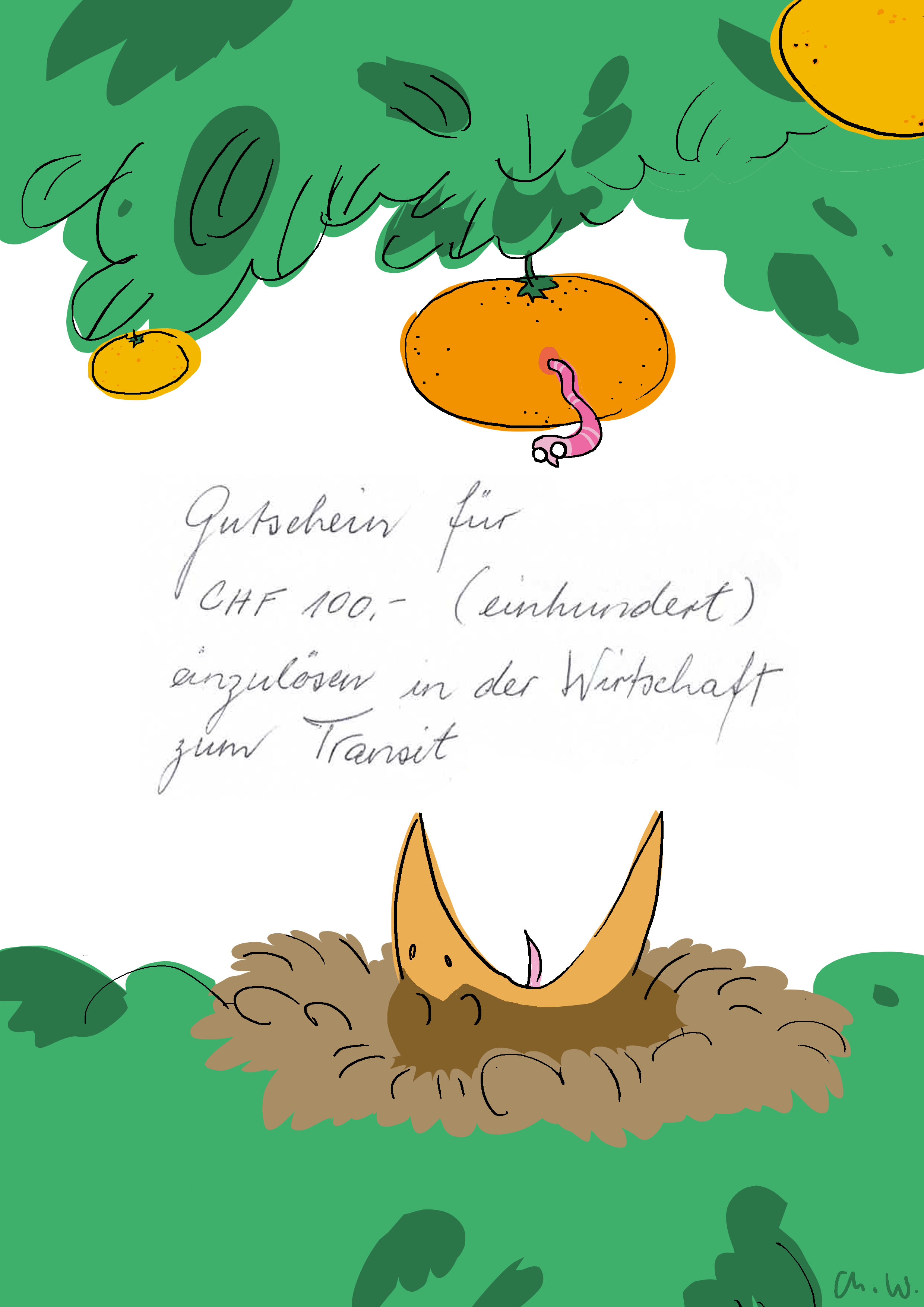 Wer keine Lust zum Rätseln hat oder sich nicht aufs Losglück verlassen mag, darf gern einen Gutschein bei uns kaufen. Bestellen könnt ihr den Gutschein (ohne Verfallsdatum) per E-Mail (imbisstransit@hotmail.com). Bestellte Gutscheine versenden wir per Post, begleitet von einem Einzahlungsschein.