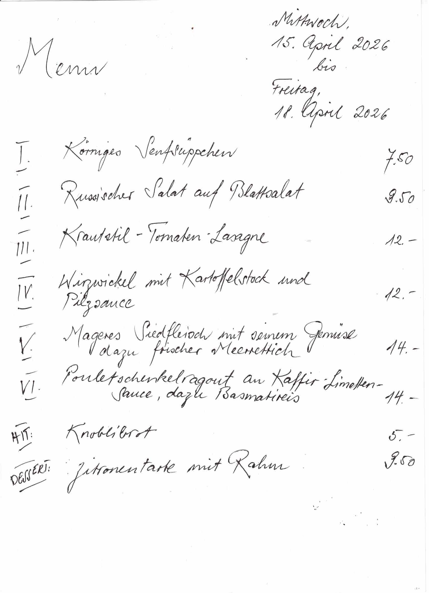 Mittwochs bis freitags ist die Küche von 18 Uhr bis 21 Uhr geöffnet. Am Karfreitag bleibt die Wirtschaft zum Transit geschlossen.